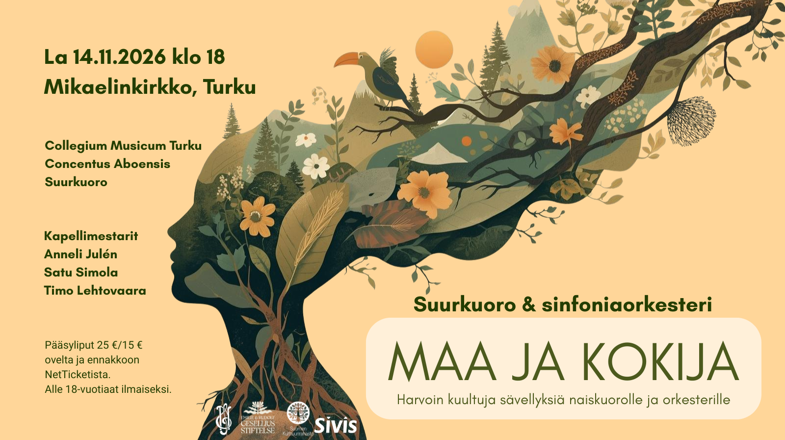 MAA JA KOKIJA -konsertti lauantaina 14.11.2026 klo 18.00